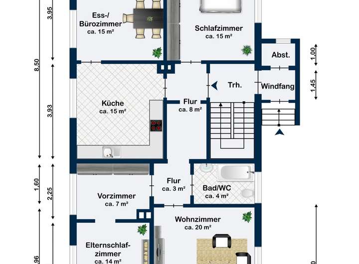 Das Haus überzeugt durch eine großzügige Raumaufteilung, solide Bausubstanz und ein weitläufiges Grundstück, das vielfältige Nutzungsmöglichkeiten bietet.