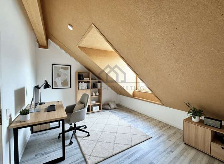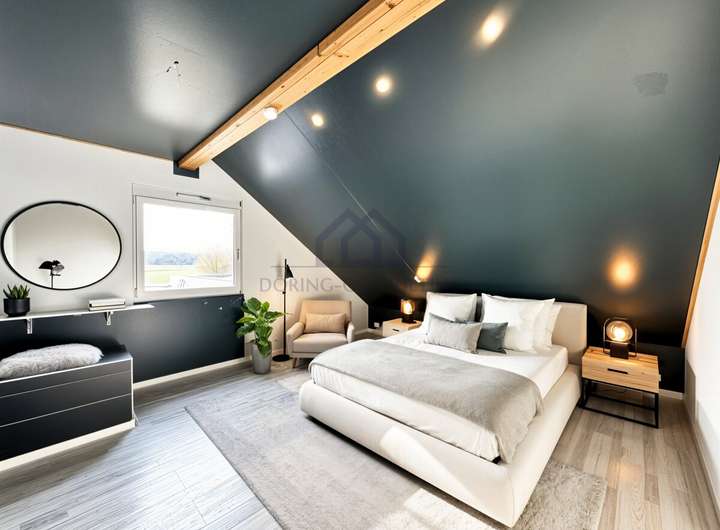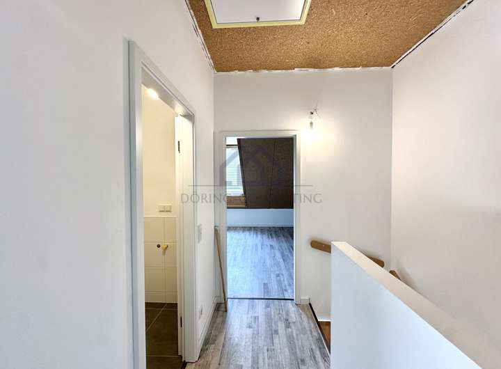 Im Dachgeschoss erwarten Sie zwei weitere Zimmer, die sich ideal als Schlafzimmer, Jugendzimmer oder Arbeitsbereiche nutzen lassen. Zusätzlich befindet sich hier ein weiteres modernes Badezimmer mit Dusche sowie Waschmaschinenanschluss, was das Dachgeschoss zu einer komfortablen separaten Wohnetage macht.