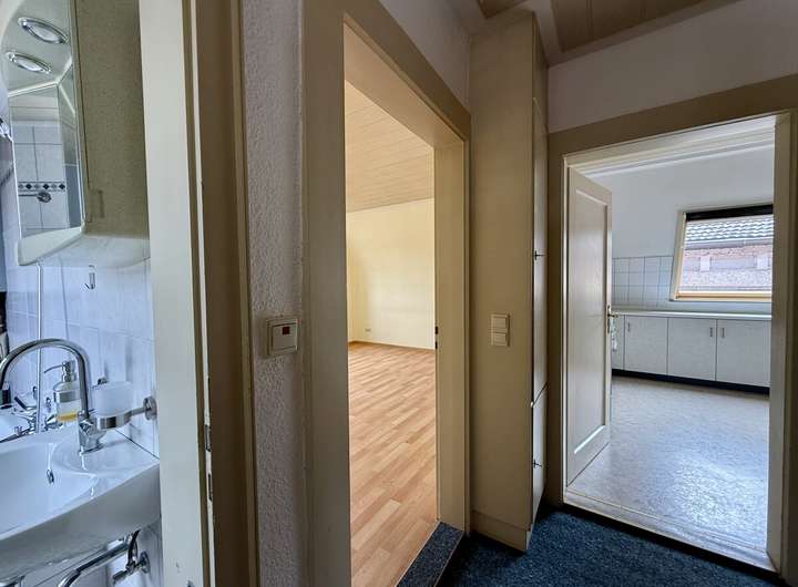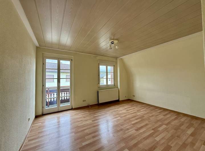Das Haus umfasst zwei Wohneinheiten: Im Erdgeschoss befindet sich eine 2-Zimmer-Wohnung mit Küche, Bad und Balkon auf etwa 65 m². Im Obergeschoss und der ausgebauten Dachspitze liegt eine 3-Zimmer-Küche-Bad-Wohnung mit ebenfalls einem Balkon und rund 80 m² Wohnfläche. Der Dachboden bietet zusätzlichen Nutzraum.