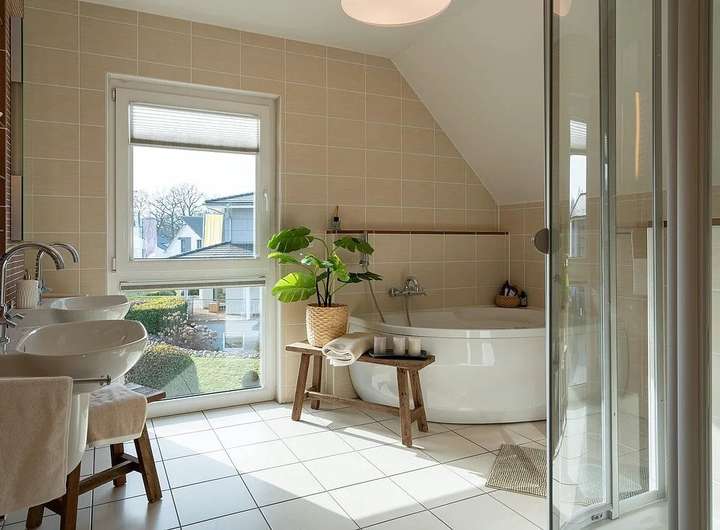 - Paket 2: Sanitär, Fliesen, Fensterbänke, Innentüren, Bodenbeläge und Tapeten