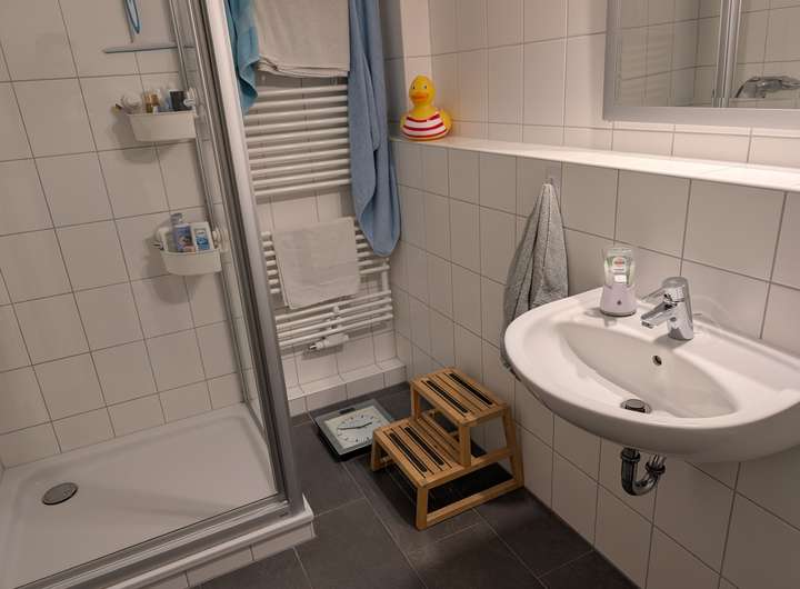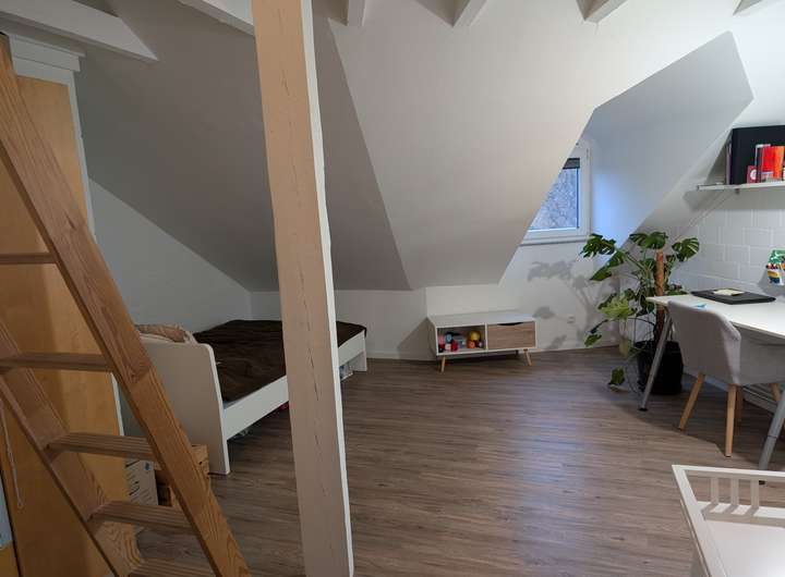 Dachgeschoss. Das ausgebaute Dachgeschoss bietet zwei weitere große Räume sowie ein zusätzliches Duschbad – perfekt für Teenager, Gäste oder als Hobby- bzw. Arbeitsbereich.