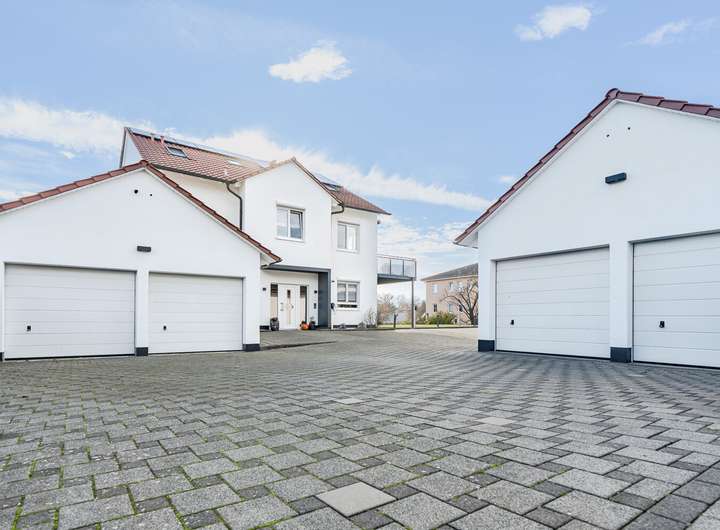 High-End-Residenz am Feldrand, flexibel nutzbar mit weiterem Baupotenzial, 4 Garagen & 10 Stellpl.