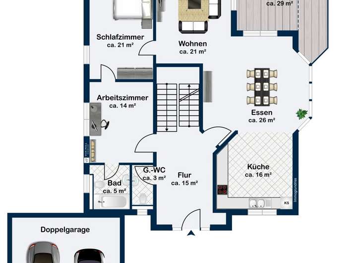 - ca. 15m² große Terrasse mit elektr. Markise im Souterrain
