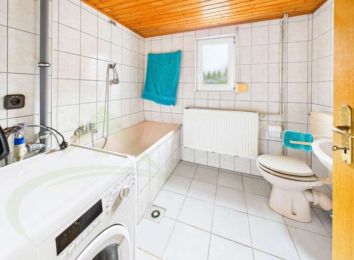 Das Haus präsentiert sich sanierungsbedürftig, bringt jedoch dank durchdachter Raumaufteilung, doppelverglaster Kunststofffenster und Gaszentralheizung eine solide Basis für eine stilvolle Modernisierung mit. Schon jetzt sorgt der Mix aus Fliesen- und Laminatböden, drei voll ausgestatteten Badezimmern, einem separaten Gäste-WC sowie zwei praktischen Abstellräumen für komfortables Wohnen im Alltag.