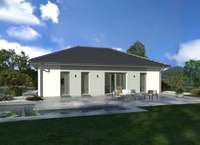 Unser Bungalow 1 Walmdach bietet auf einer Wohnfläche von 107 m² alles, was die Kleinfamilie zum Wohnen und Wohlfühlen benötigt. Das kombinierte Wohn-Ess-Zimmer ist großzügig geschnitten und dank drei Glastüren zum Garten hin schön hell. Auch die vom Esszimmer türlos zugängliche Küche bietet genügend Platz und Tageslicht. Der angrenzende, 10 m² große Hauswirtschaftsraum ist auch direkt von außen betretbar und hat dadurch gleich in doppelter Hinsicht einen praktischen Nutzen: Einkäufe können auf diese Weise direkt versorgt werden und die Wohnräume bleiben von möglichen Schmutzschuhen verschont. Der ebenfalls geräumige Flur verbindet den Wohnbereich des Hauses mit den privaten Rückzugsorten: dem Bereich der Eltern mit Schlafzimmer und angeschlossener Ankleide und einem lichtdurchfluteten Kinderzimmer. Ein voll ausgestattetes Bad mit Badewanne und Dusche sowie ein Gäste-WC runden das Angebot ab.