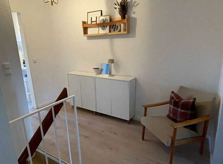 Durch die Bauweise als Kettenhaus ist das obere Stockwerk alleinstehend, und im Edgeschoss angrenzend and wenig-genutze Teile des nebenhauses sodass man praktisch nichts von den Nebenhäusern mitbekommt.
