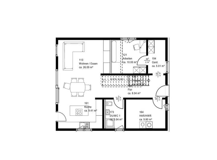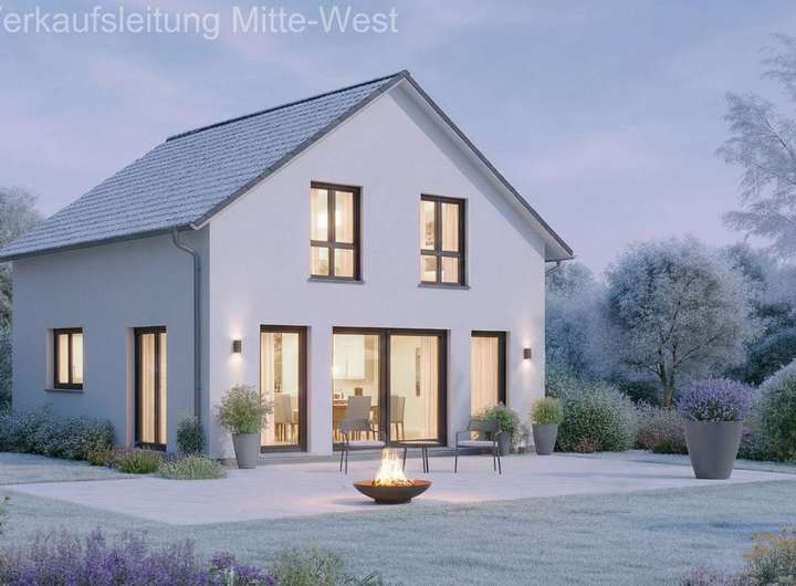 Harmonisch präsentiert sich dieser stilvolle Satteldachklassiker. Unter dem zeitlosen Dach warten rund 152 m² Wohnfläche auf zwei Ebenen darauf, bezogen und mit Leben erfüllt zu werden. Das Erdgeschoss überzeugt mit einer durchdachten Raumaufteilung, die Funktionalität und Wohnqualität gleichermaßen in den Mittelpunkt stellt. Ein vielseitig nutzbares Arbeitszimmer, der Hauswirtschaftsraum, das Duschbad sowie der offene Wohn- und Essbereich bieten viel Platz für das Familienleben und ermöglichen optional auch ein barrierefreies Wohnen auf einer Ebene.
