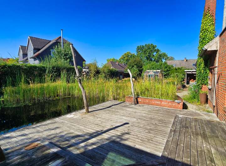 GARTEN: Großer, liebevoll gestalteter Garten mit Badeteich, Geräteschuppen, Gewächshaus und Gartenbrunnen.