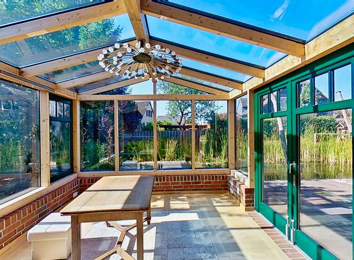 HERZSTÜCK ERDGESCHOSS-WOHNUNG: Eine geräumige 4-Zimmer-Wohnung mit ca. 126 m², offenem Wohnbereich, Kamin und einem beheizten Wintergarten.