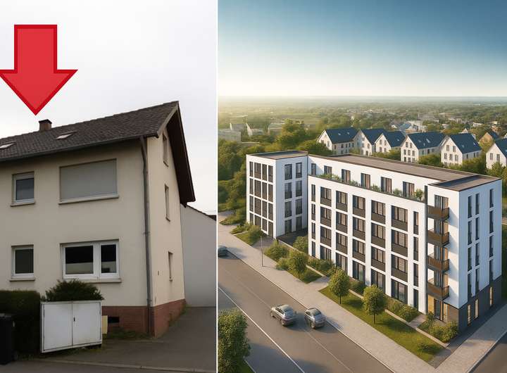 Ein voll vermietetes Wohngebäude mit sieben Wohneinheiten (Baujahr 1972, ca. 300 m² Wohnfläche) sowie ein direkt angrenzendes Wohnbaugrundstück mit erteilter Baugenehmigung für einen hochwertigen Neubau.