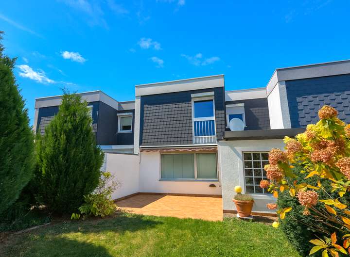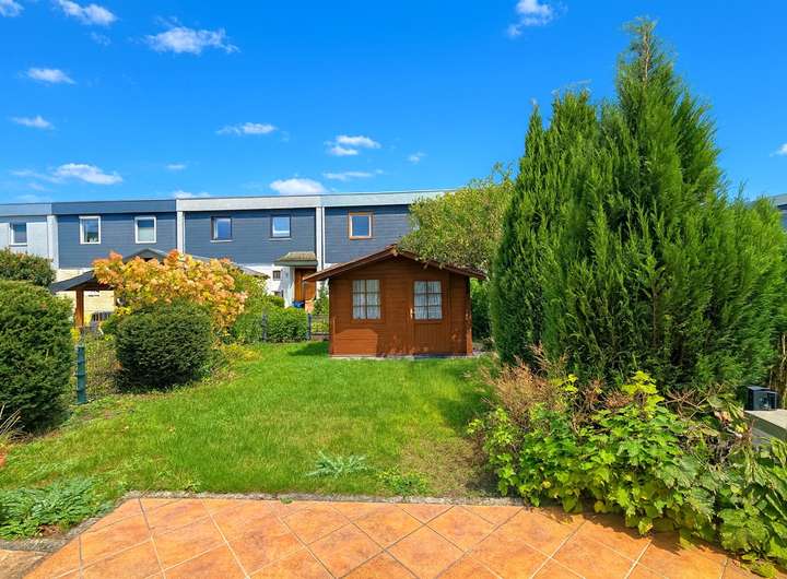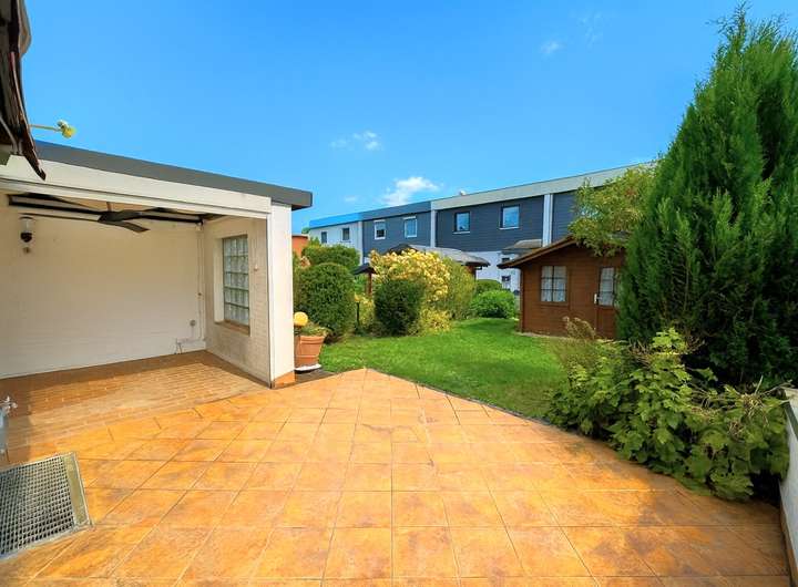 Die Südausrichtung mit Hauptterrasse und überdachter, wintergartenähnlicher Terrasse sowie ein pflegeleichter Garten mit Gartenhaus schaffen beste Voraussetzungen für entspanntes Wohnen.