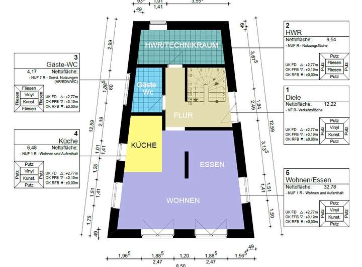 Im Erdgeschoss befindet sich ein XL Wohn- und Esszimmer, ein herrschaftlicher Eingangsbereich als Flur, eine schöne Küche (wahlweise als offene oder geschlossene Küche), ein Gäste-Wc inklusive bodengleicher Dusche sowie ein HWR/TECHNIKRAUM.