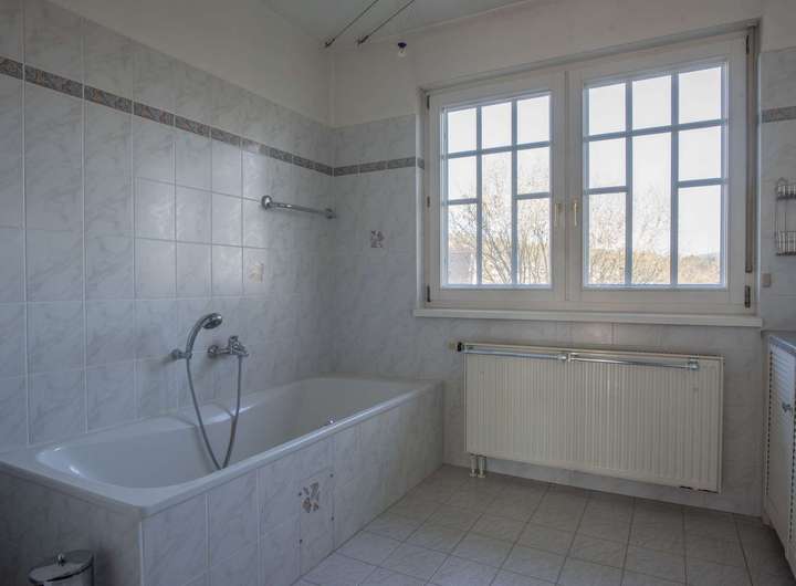 Tageslichtbad (2 Waschbecken, Dusche, Badewanne, WC).