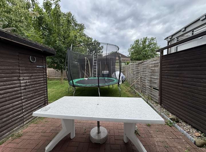 Ein Highlight ist der gepflegte Garten mit sonniger Terrasse. Hier genießen Sie den Morgenkaffee, gesellige Grillabende oder einfach Ruhe im Grünen. Ein kleines Gartenhaus bietet zusätzlichen Stauraum.