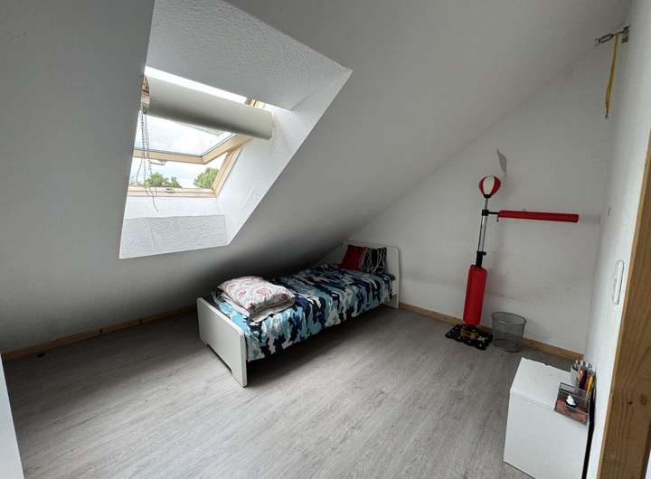 Das 1. Obergeschoss verfügt über zwei gut geschnittene Zimmer, die flexibel als Schlaf-, Kinder- oder Arbeitszimmer genutzt werden können. Das Dachgeschoss beherbergt ein weiteres großzügiges Zimmer, aktuell als Büro und Kinderzimmer genutzt, das sich ebenso als Gäste- oder Hobbyraum eignet.