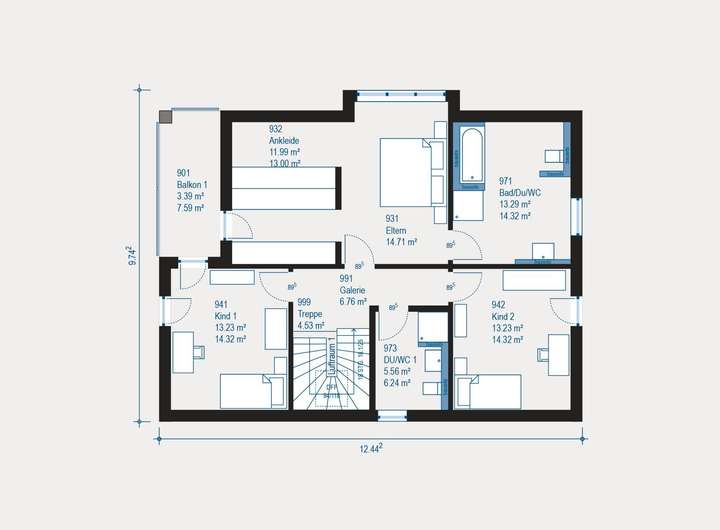 Das moderne und hochfunktionale Baukonzept erstreckt sich über zwei Etagen, in denen neben 4 Schlafzimmern auch ein stilvolles Badezimmer Platz findet. Genießen Sie die Freiheit, Ihr Zuhause nach Ihren Wünschen zu gestalten und erleben Sie eine harmonische Raumaufteilung, die für ein angenehmes Wohngefühl sorgt.
