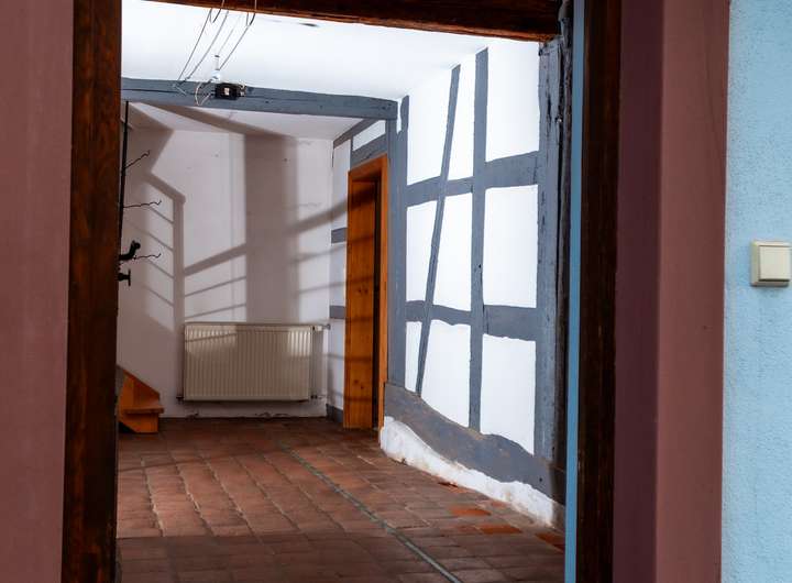 Das Fachwerkhaus bildet das Herzstück des Ensembles – liebevoll erhalten, modernisiert und voller Charakter.