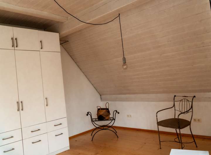 Über der Einzel- (manuell) und Doppelgarage (elektrisch) liegt eine liebevoll ausgebaute Scheunenwohnung – ideal als Gäste- oder Einliegerwohnung.