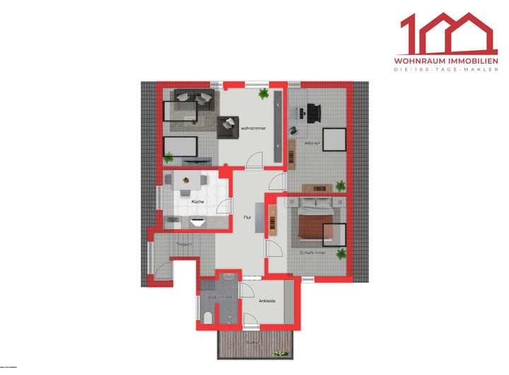 Der beigefügte Grundriss zeigt die Wohnung ohne Gewähr auf eine maßstabgetreue Abbildung. Einige Bilder im Exposé wurden virtuell möbliert. Die Möbel sind nicht Bestandteil des Angebots, sondern dienen lediglich als Einrichtungsbeispiele.