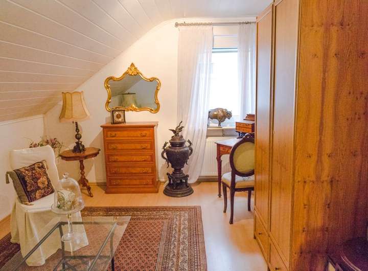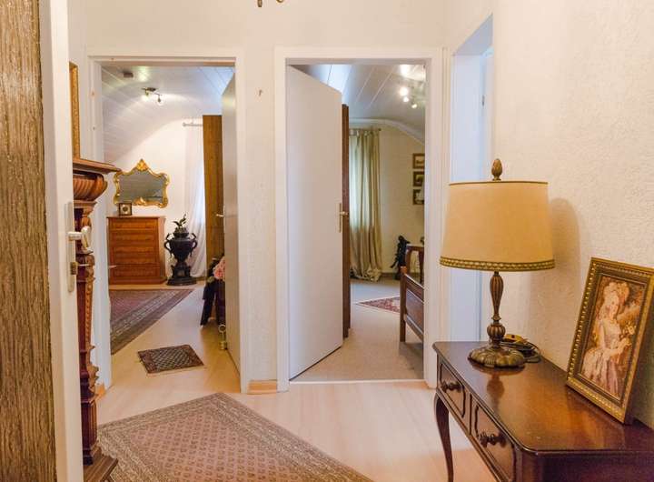 Im Erdgeschoss sowie im Dachgeschoss stehen die Räumlichkeiten zur Eigennutzung bereit und eignen sich ideal für Familien, die großzügigen Wohnraum mit zusätzlicher Flexibilität suchen. Die Wohnung im ersten Obergeschoss ist an zuverlässige Mieter vergeben – ein Pluspunkt für Kapitalanleger oder Käufer, die einen Teil des Kapitaldienstes durch Mieterträge gestalten wollen.