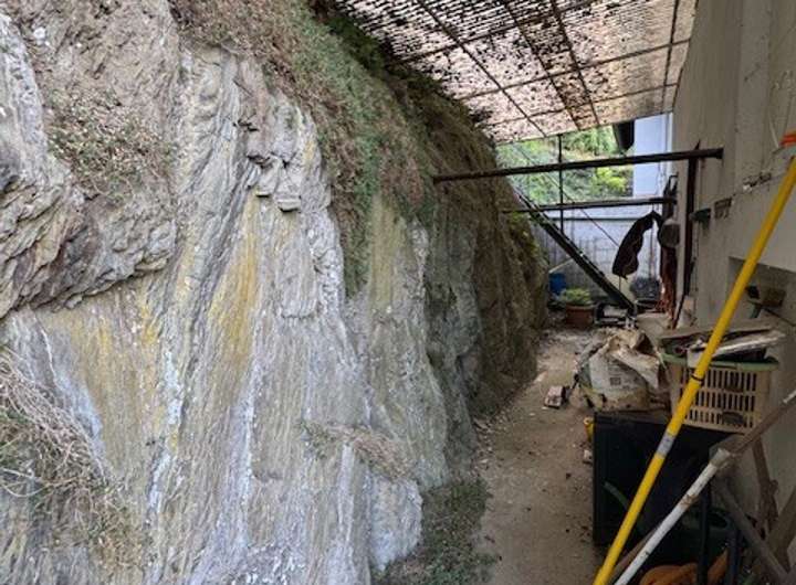Abgesehen von einem kleinen Streifen hinter dem Haus, der bis zum Felsen reicht, verfügt das Haus über kein weiteres Grundstück.