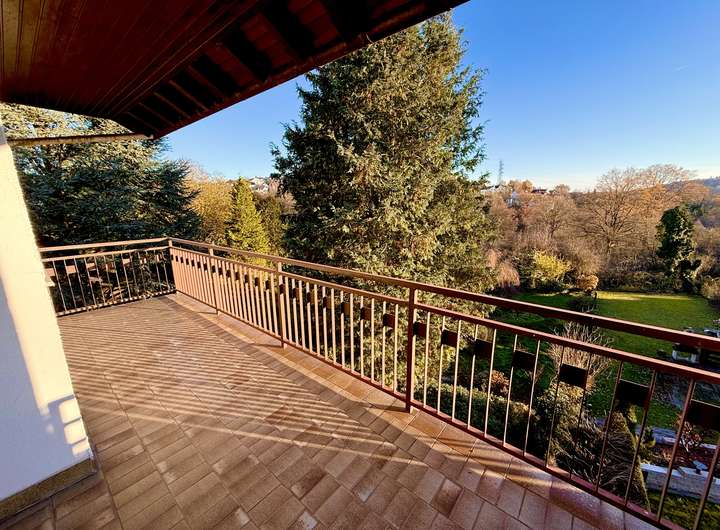 Die Immobilie hat 6 Zimmer, auf jeder Etage befindet sich außerdem noch ein Balkon.