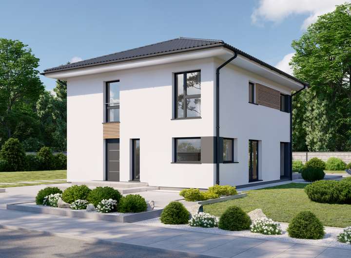 Das Systemhaus "Dunwood Park 150" ist als zweigeschossige Stadtvilla konzipiert und kombiniert Funktionalität mit großzügiger, lichtdurchfluteter Raumaufteilung. Im Obergeschoss finden sich komfortable Schlafzimmer, ein modernes Bad mit Ankleide und viel Bewegungsspielraum. Die Ausstattung – von hochwertigen Böden über ein edles Treppengeländer bis zur modernen Effizienzhaus-Technik – setzen fortschrittliche Akzente.
