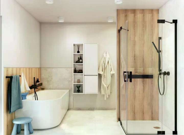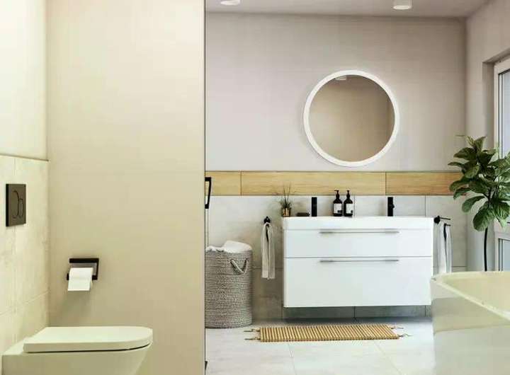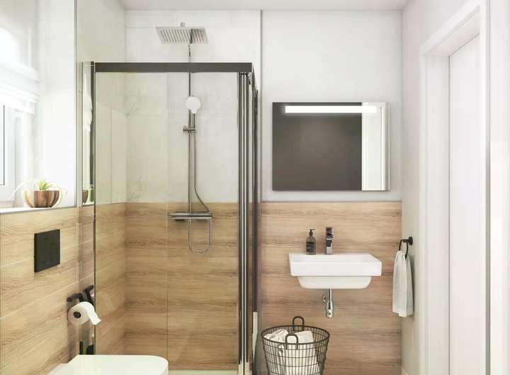 Im Obergeschoss befindet sich das lichtdurchflutete Badezimmer und im Erdgeschoss befindet sich ein Gäste-WC (kann aber auch als Duschbad ausgeführt werden)