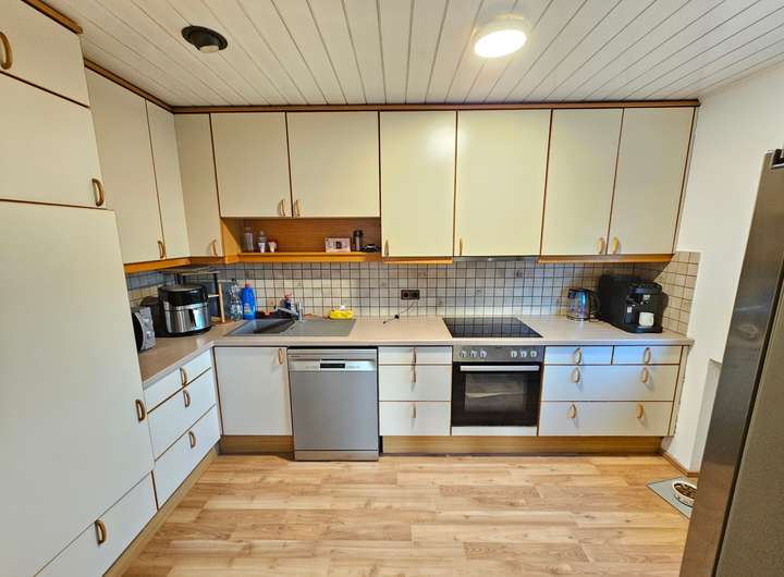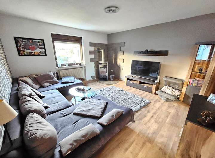 Auf gut 127 m² Wohnfläche öffnet sich ein durchdachtes Raumangebot mit insgesamt 6,5 Zimmern und zwei Badezimmern, das Familien ebenso anspricht wie Paare mit Platzbedarf oder Menschen, die Wohnen und Arbeiten harmonisch verbinden möchten. Die Wohnräume präsentieren sich hell, freundlich und einladend – mit einer Wohnatmosphäre, die Wärme ausstrahlt und zugleich genügend Freiraum lässt, um individuelle Wohnideen zu verwirklichen. Der Kaminofen im Wohnbereich ergänzt die zentrale Gasheizung um eine gemütliche, natürliche Wärmequelle und verleiht besonders in den kühleren Monaten ein behagliches Wohngefühl.