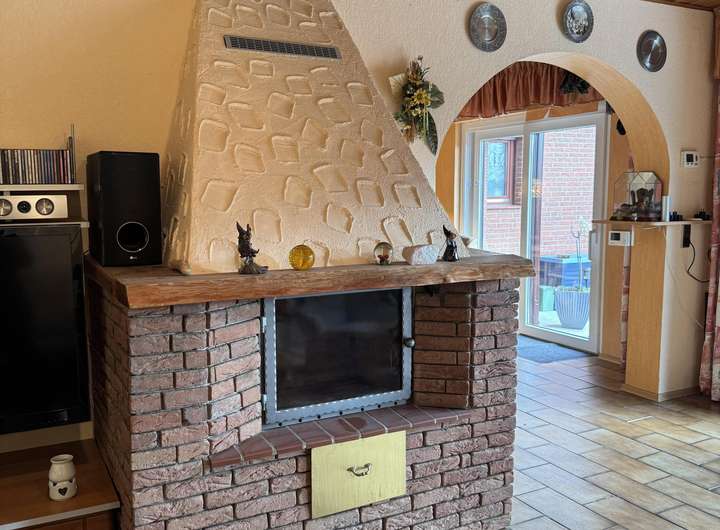 Im Erdgeschoss erwartet Sie ein großzügiger, offen gestalteter Wohn- und Essbereich – der perfekte Ort für gemeinsames Familienleben und gemütliche Abende. Die angrenzende Küche fügt sich harmonisch in das offene Konzept ein. Ein besonderes Highlight ist der gemauerte Kamin im Wohnbereich.