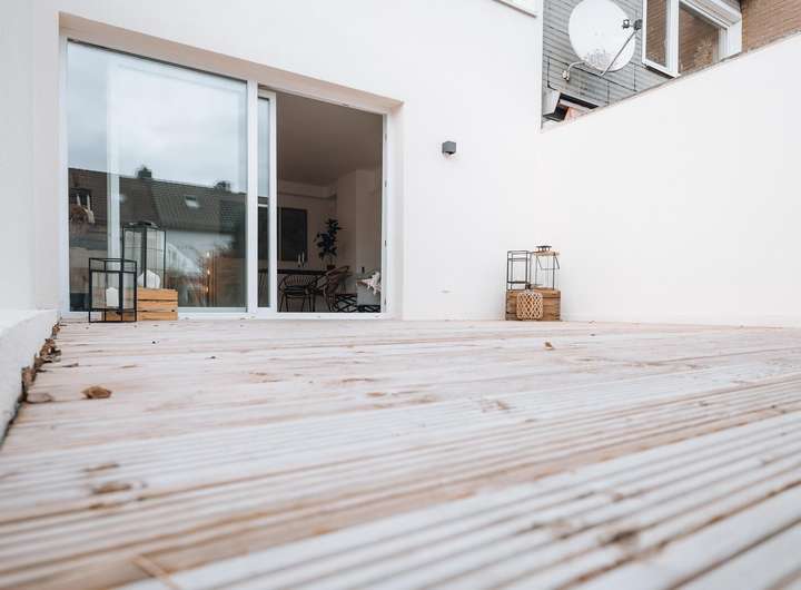 - Neuer Terrassenanbau mit großem ebenerdigen Schiebeelement zum Garten