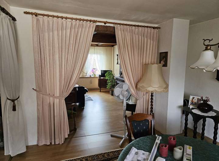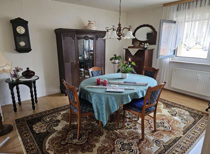 Obergeschoß: Wohnzimmer, Schlafzimmer, Küche und Esszimmer, Bad