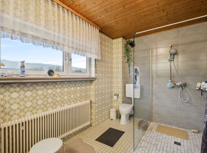 Dieses gepflegte Einfamilienhaus verbindet Platz, Funktionalität und eine traumhafte Lage mit Naturblick. Der bestehende 80er-Jahre-Charme der Inneneinrichtung bietet Ihnen die perfekte Grundlage, um das Haus nach Ihren eigenen Vorstellungen zu modernisieren und zu einem persönlichen Traumzuhause zu machen – ideal für alle, die Lebensqualität, Freiraum und flexible Wohnkonzepte suchen.