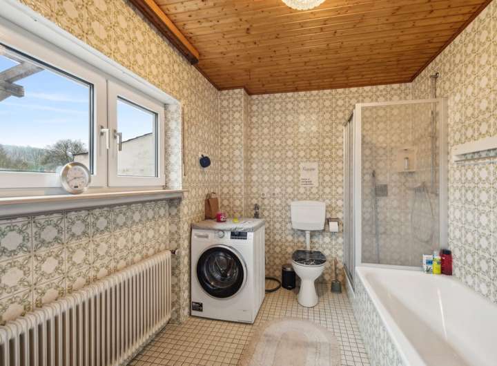 Schon beim Betreten spürt man den einladenden Charakter des Hauses. Helle Räume, eine praktische Raumaufteilung und gepflegte Details sorgen für ein angenehmes Wohngefühl. Das Badezimmer im Obergeschoss wurde modernisiert und überrascht mit einer großzügigen, bodengleichen Dusche. Die dreifach verglasten Fenster zur Straßenseite (2013), isolierverglasten Fenster zum Garten sowie die gedämmte oberste Geschossdecke tragen zu einem guten energetischen Stand bei. Eine zuverlässige Viessmann-Öl-Heizung aus 2004 gewährleistet effiziente Wärme.