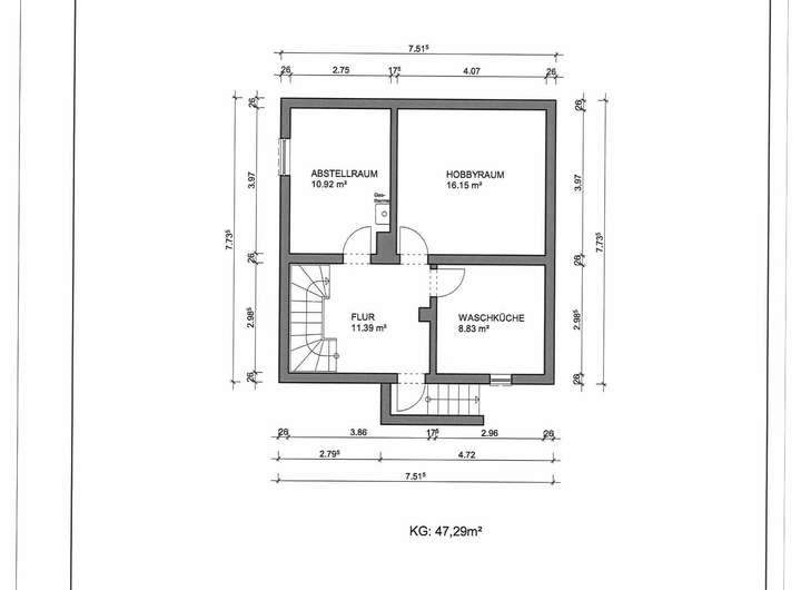 Vollunterkellerung mit Hobbyraum/ Gastraum und Gartenzugang.