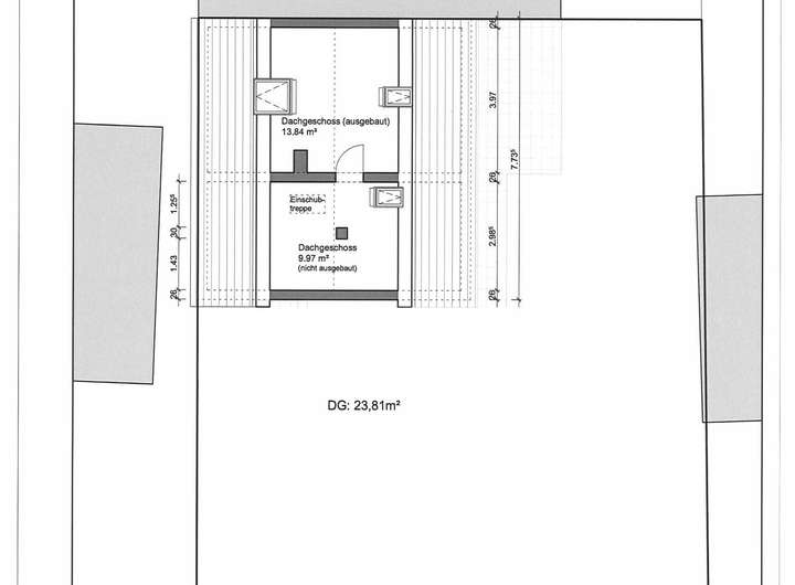 Dachstudio (teilbar in 2 Wohnbereiche) im DG. Zusätzliches Duschbad möglich.