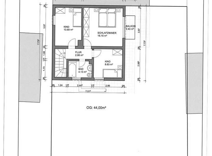 3 Schlafzimmer plus Bad und Balkon im OG,