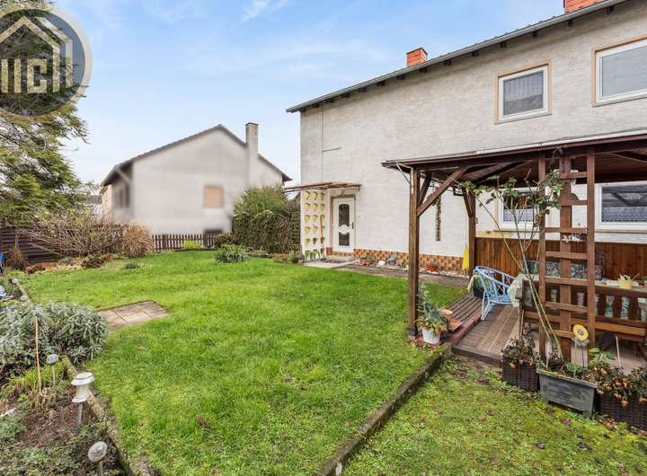 Das 675m² große Grundstück bietet sonnige und schattige Plätzchen, hinter dem Haus befindet sich noch ein Gartenhaus mit Freisitz.