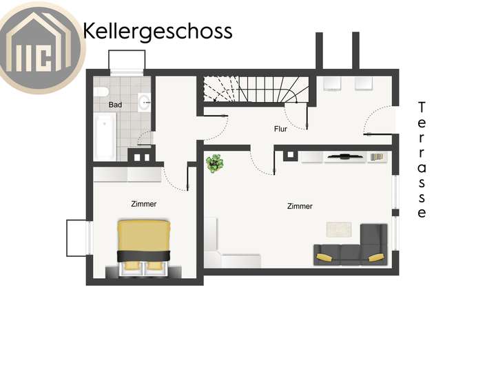 Die Wohnfläche beträgt ca. 112 m², die beiden Räume und das Bad im Untergeschoss mit weiteren ca. 45m² Nutzfläche sind hierin nicht enthalten.
