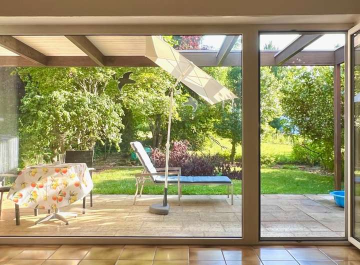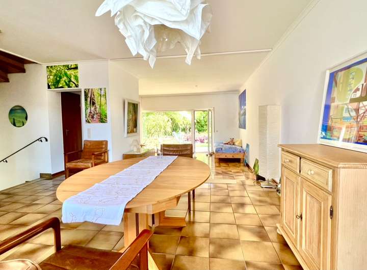Der großzügige Wohn- und Essbereich bildet das Zentrum des Hauses: Große Fensterflächen mit Blick in den Garten lassen viel Tageslicht herein und schaffen ein freundliches Ambiente, während der gemütliche Grundriss zu erholsamen Stunden mit Familie und Freunden einlädt.