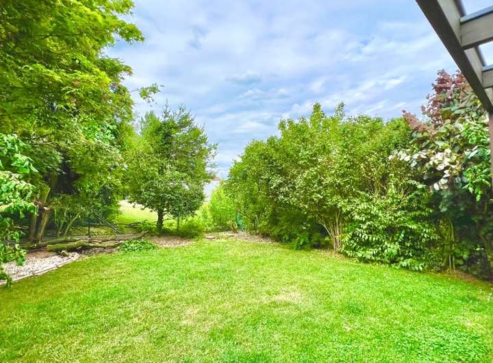 Das Grundstück präsentiert sich als grüne Oase: Ein liebevoll gestalteter Garten mit Terrasse lädt im Sommer zum Entspannen, Grillen oder Spielen ein. Hier findet jeder seinen persönlichen Lieblingsplatz.