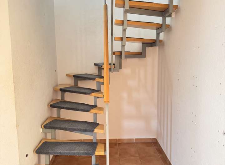 hellen Holztrittstufen intensiviert das Gefühl von Weiträumigkeit, Luft und Leichtigkeit.