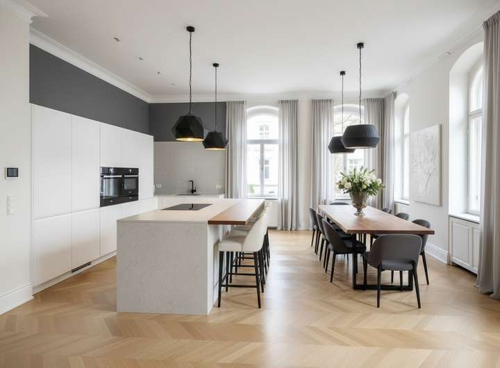 - Echtholz-Parkettboden oder hochwertiges Vinyl