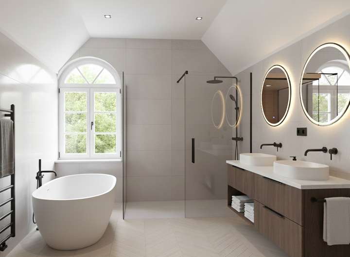 - Praktische Badgestaltung mit ebenerdiger Dusche und Badewanne