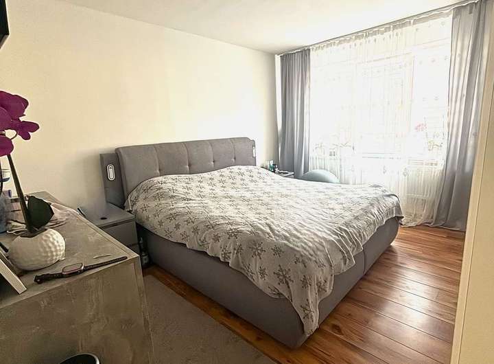 Vom größten der Schlafzimmer gelangt man auf einen separaten Balkon mit Ausblick in die grüne Umgebung.
