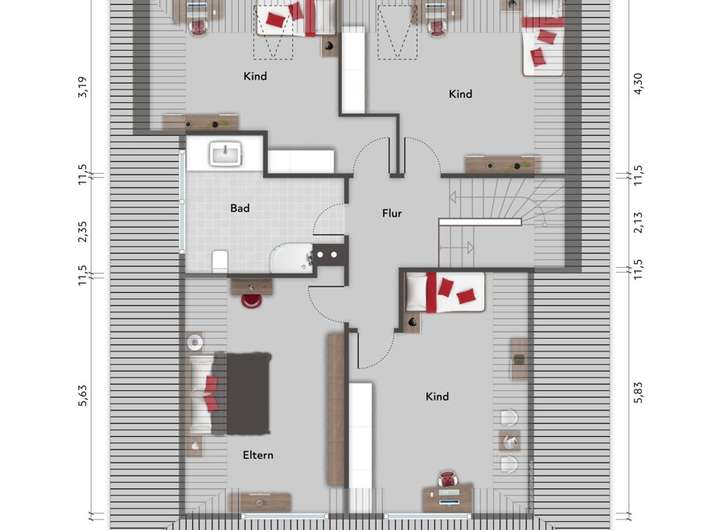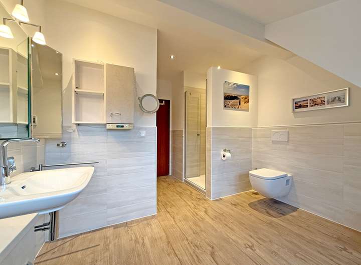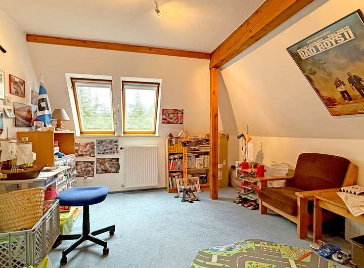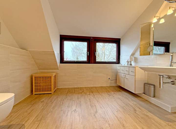 Im Obergeschoss erwarten Sie vier geräumige Schlafzimmer, die sich ideal als Rückzugsorte für Eltern und Kinder eignen. Zwei moderne Badezimmer runden das Angebot ab und sorgen für höchsten Komfort.