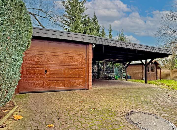 Abgerundet wird dieses attraktive Angebot durch einen geräumigen Vollkeller, der einen Saunabereich mit Dusche und eine Menge Stauraum bietet, sowie eine Garage mit angrenzendem Doppelcarport.