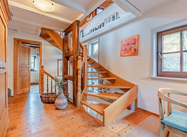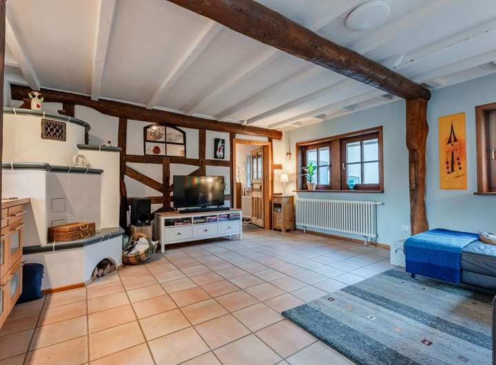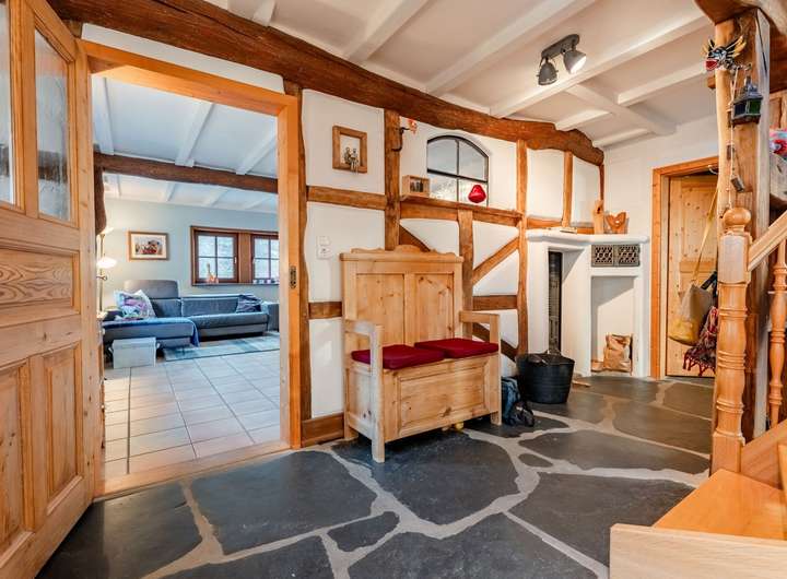 - 3 Zimmer, Keller, Waschküche, Garage, Tageslicht-Badezimmer mit Dusche und Badewanne, Festbrennstoffofen, Naturschiefer-Dach