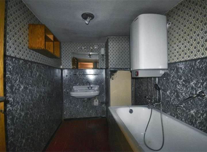 - Badezimmer mit einfacher, teils funktionsunfähiger Ausstattung