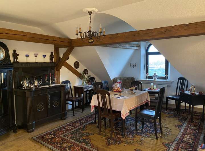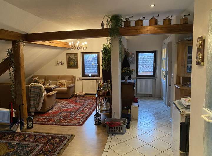 Im später ausgebauten Dachgeschoss stehen nochmals eine Wohnung (ca. 67 m² Wohnfläche) mit einem Wohn- und Esszimmer, einem Schlafzimmer, einer Küche und einem Tageslichtbad mit Dusche zur Verfügung.
